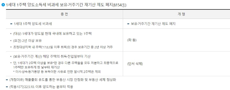 ▣ 다주택자 양도소득세 중과 한시 배제 등「소득세법 시행령」 개정('22.5.8. 및 '23.1.12. 기획재정보 보도자료 참고)