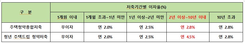 청년 주택드림 청약통장은 최대 4.5%의 이자율을 적용합니다. 납입원금 5,000만원 한도 내에서 신규가입일로부터 2년 이상이고 가입일로부터 10년 이내 무주택 기간에 한하여 기존 주택청약종합저축 이율에 1.7%를 더한 4.5%의 이자를 지급합니다. 또한 납입금액도 월 100만원까지 가능합니다.